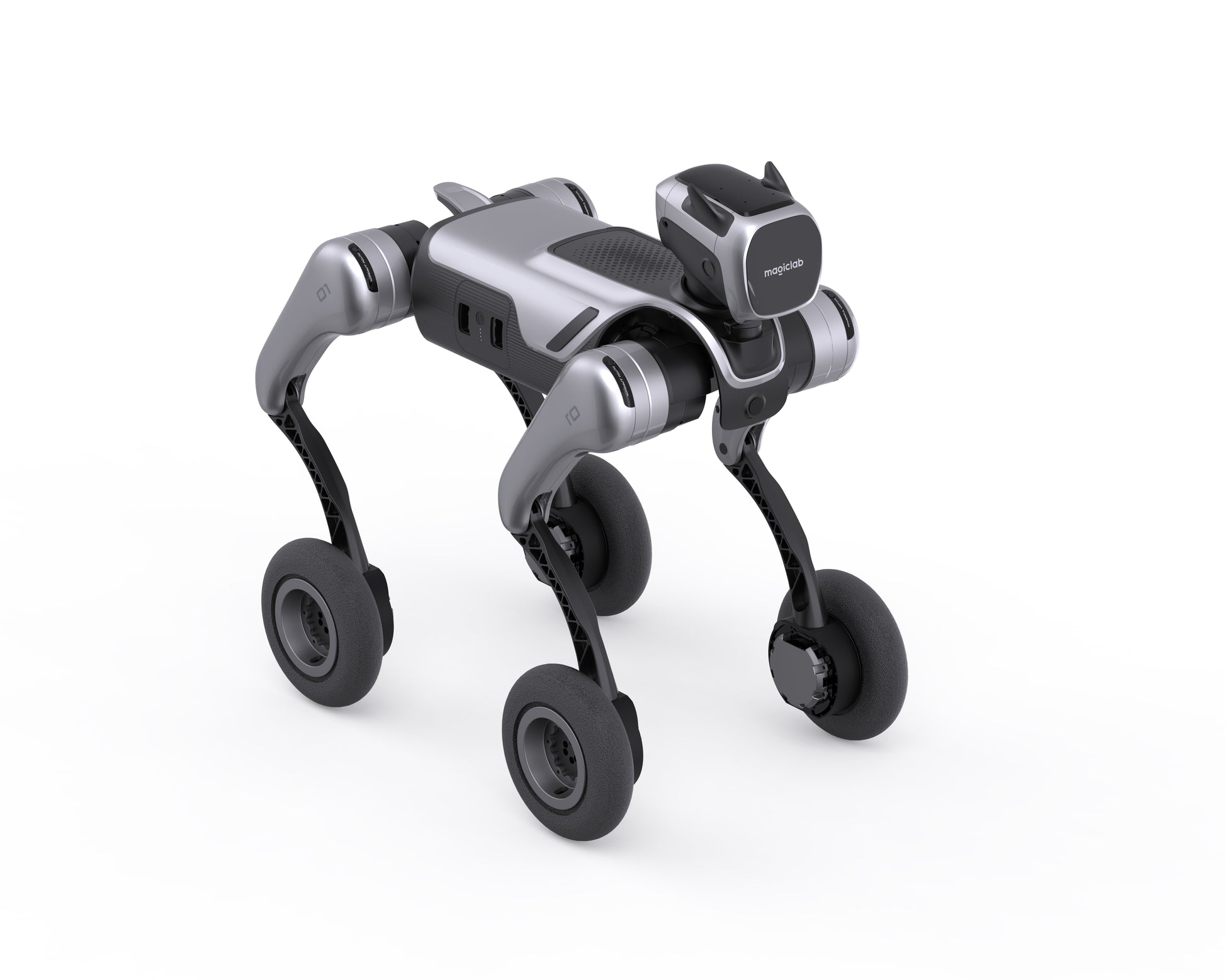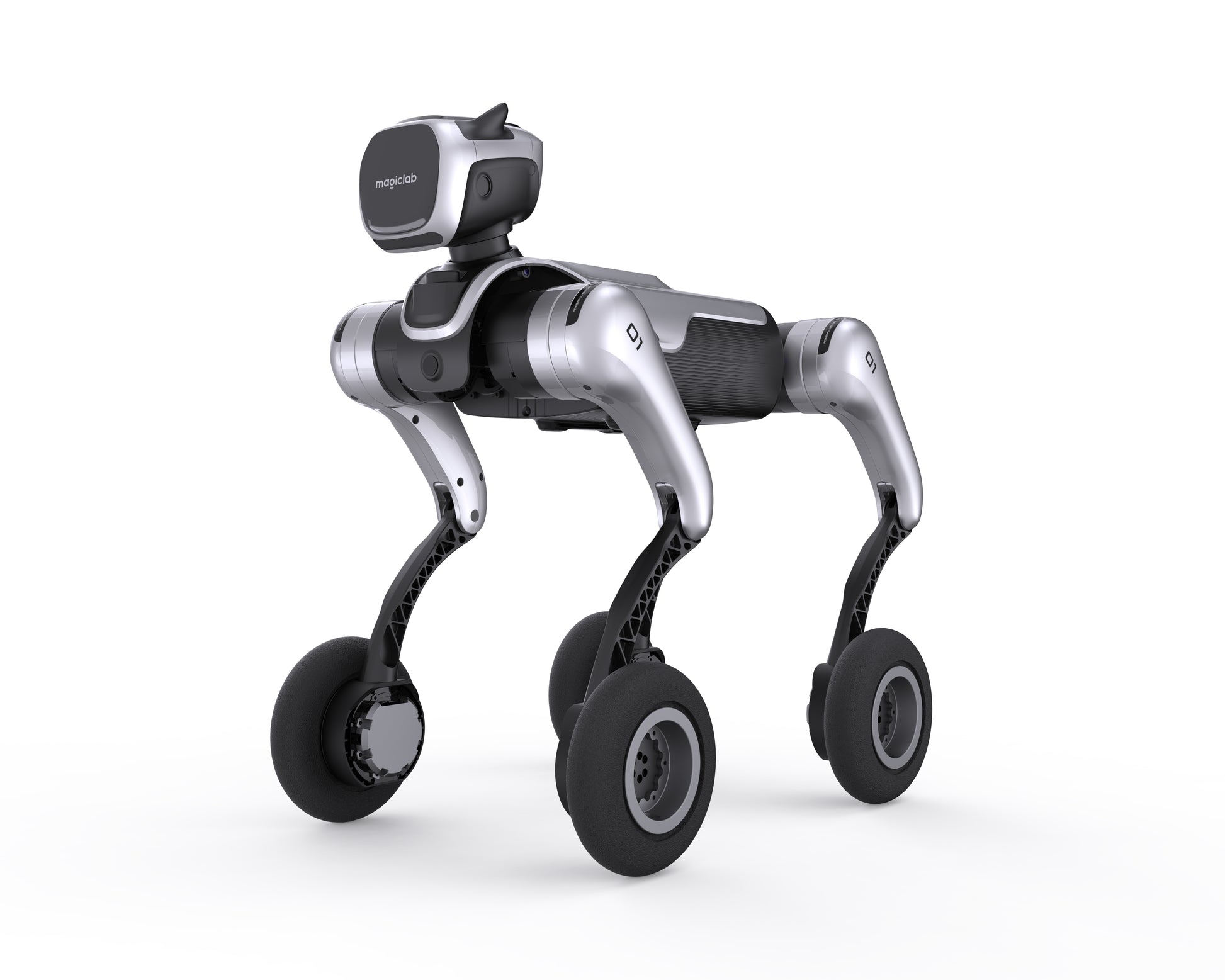 Dzięki opcjonalnym kołom montowanym na kończynach Magic Dog może poruszać się nie tylko krokiem, ale i toczyć z prędkością ponad dwukrotnie większą. Ten tryb hybrydowy otwiera zupełnie nowy wymiar mobilności — efektowny, dynamiczny i gotowy na każde wyzwanie.