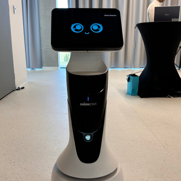 OrionStar MiniBot to inteligentny robot obsługowy z 14-calowym ekranem dotykowym, kamerą głębi, lidarowym systemem nawigacji i 6-mikrofonowym układem audio. Idealny do pracy w hotelach, restauracjach, placówkach medycznych i przestrzeniach handlowych. Samodzielnie się ładuje i działa do 12 godzin.